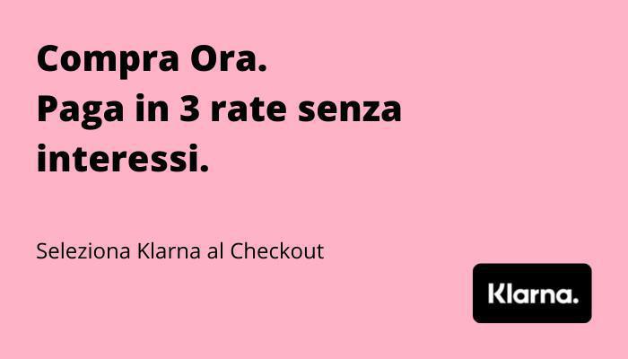 Opzione di pagamento rateale: Una volta scelto Klarna, ti verranno offerte diverse opzioni di rateizzazione. Potrai scegliere di dividere il pagamento in 3 rate mensili senza interessi oppure selezionare un piano di pagamento più lungo, a seconda della disponibilità.